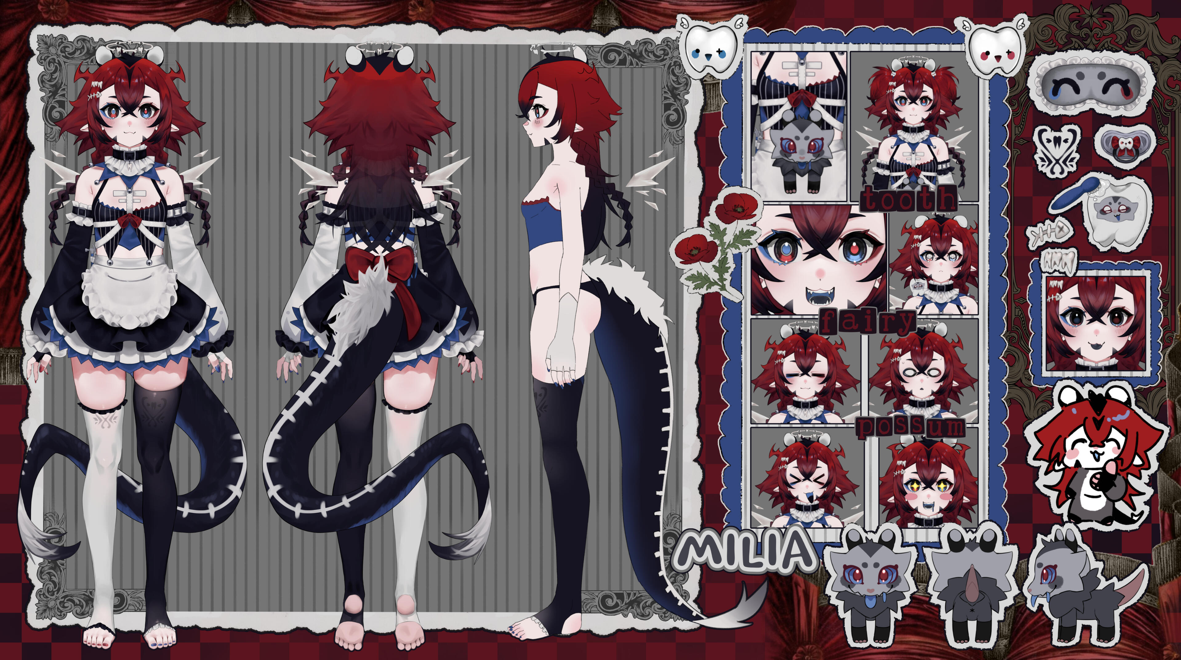 Now she’s her pet? Daughter? Apprentice? It’s a little unclear, but she definitely went in the tooth fairy's footsteps by learning the craft!Milia is a Twitch Partner that streams mainly fantasy games and art! She has a big soft spot for deep lore and old RPG-maker games and likes discovering cute indie games!